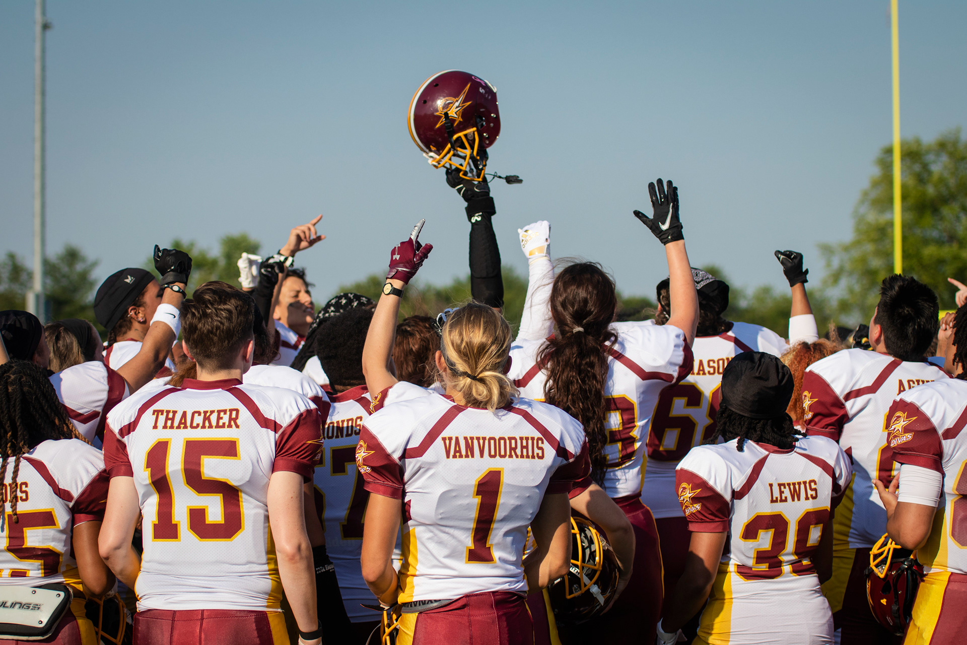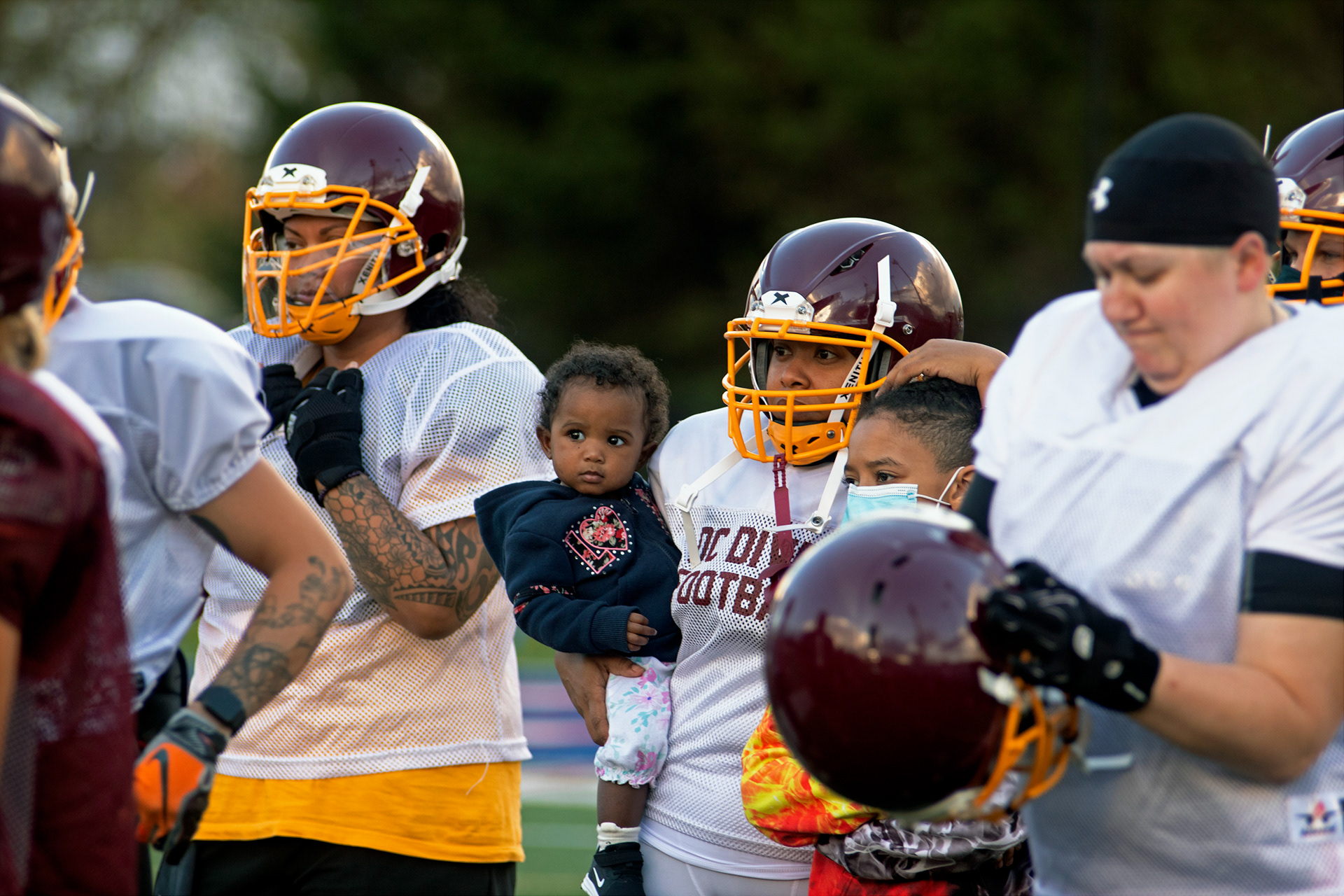 The DC Divas play with a common goal, they play for Her. The DC Divas are an all women’s, full-contact, professional football team in the Women’s Football Alliance. Playing for the Divas serves as an opportunity to empower young girls and women of all ages, showing them that their possibilities are never limited to a box the world tries to put them in. Each drive, each play, and each moment stems from the strength and the courage that inspires female athletes. This extends beyond time on the field. In each moment of their lives, they work toward bettering themselves in their personal life and their “football life”. The team has become a family, a sisterhood, carving their own path in a world that questions and challenges their passion on a daily basis. These pictures are made for Her, to remind other girls of the power they hold.